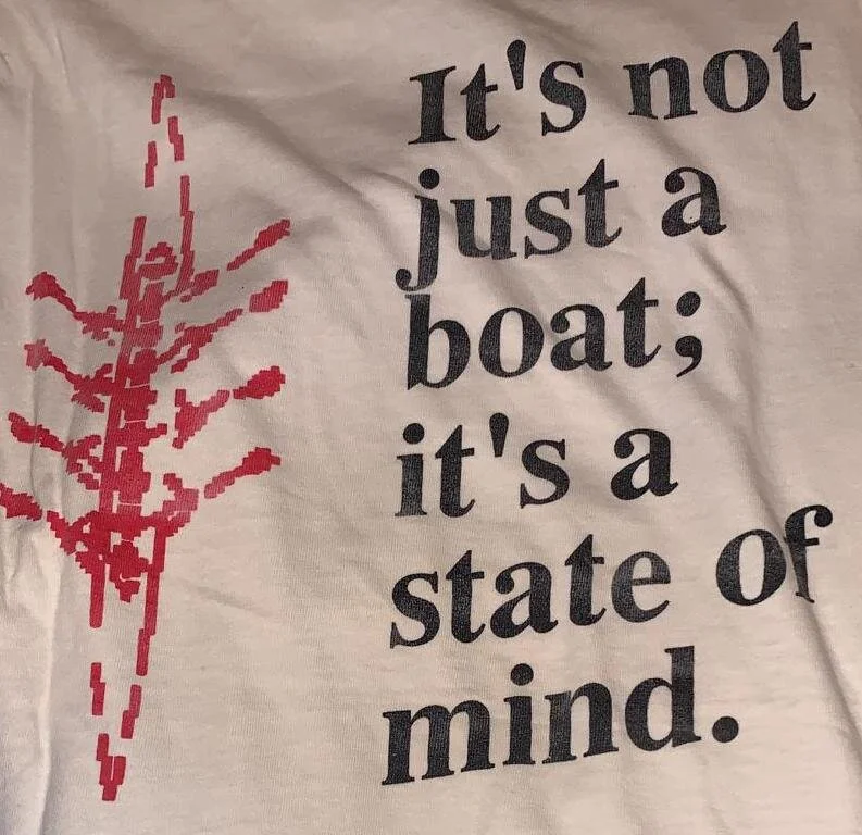 Boat race after boat race wasn’t identifying a clear first boat so almost everyone spent some time in the dreaded 4th boat… not so affectionately called the Death Barge after slamming into the dock so hard the bow ball broke off (in the coxswain’s defense, it didn’t steer very well…) This inspired a t-shirt with the motto “It’s not just a boat, it’s a state of mind.” … sounds cool but what did it mean?